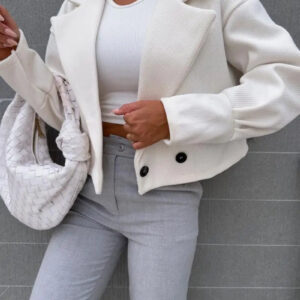 Deze korte woljas voor dames is ideaal voor degenen die op zoek zijn naar een elegant en veelzijdig stuk, dat comfort en stijl combineert voor een chique stedelijke look tijdens de herfst.